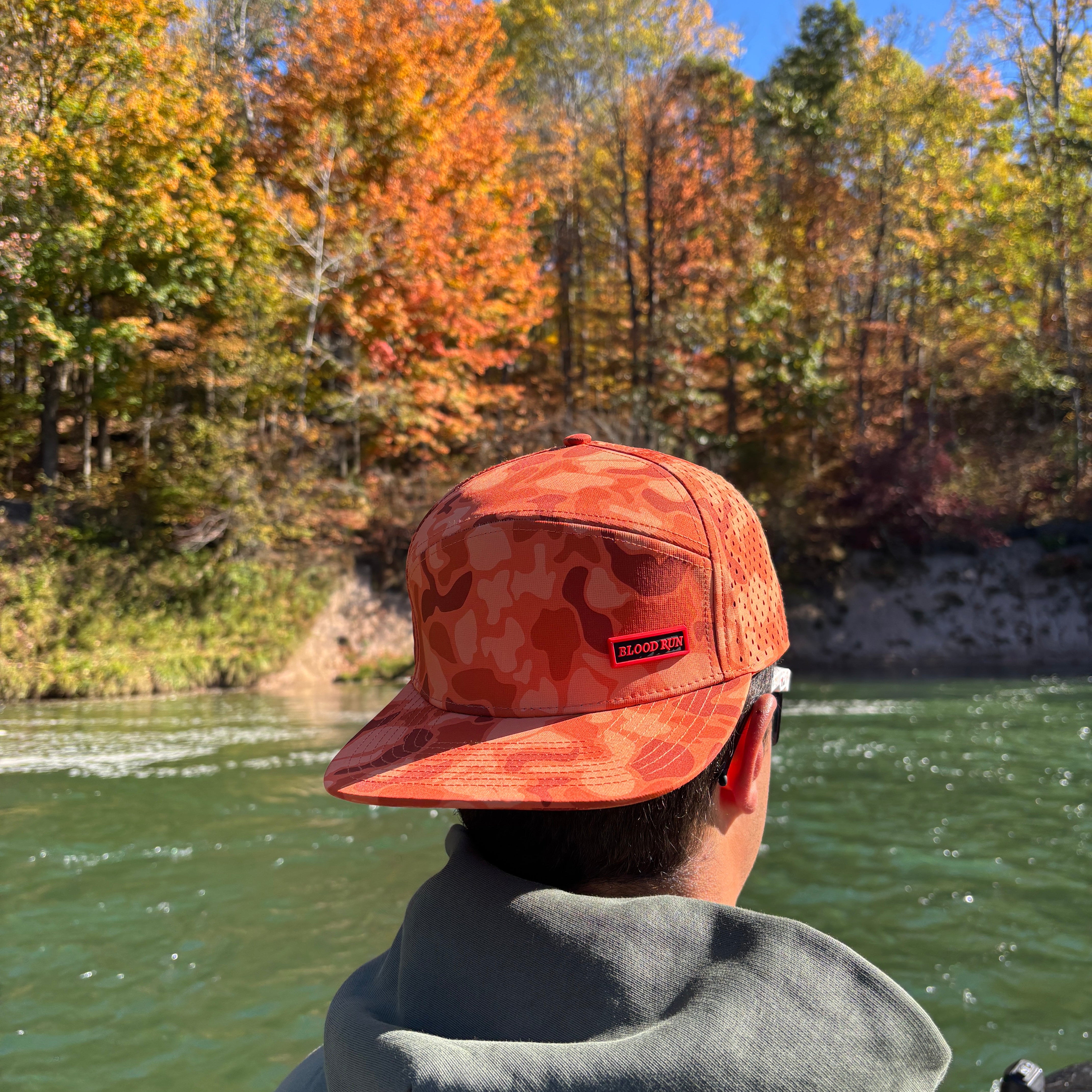 BLOOD RUN FIREBALL HUNTERS ORANGE CAMO SNAPBACK HAT