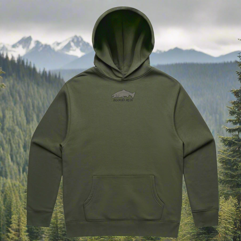 Featuring the Blood Run "Steelhead" logo for a classic and stylish look.