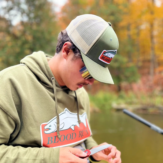 CARDINAL RED BLOOD RUN FISHING SNAPBACK MESH TRUCKER