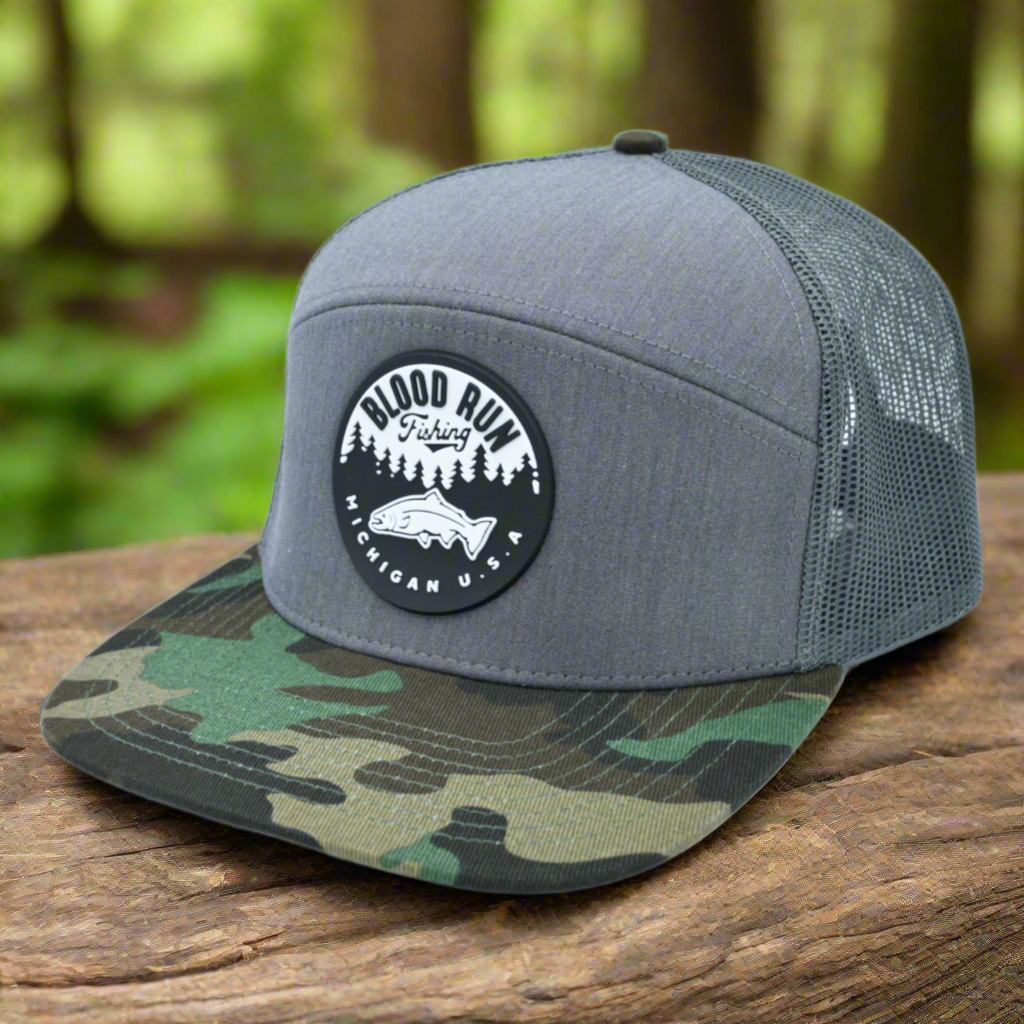 But this isn't just any old fishing hat. The stylish design features a heather grey crown and army green camo brim, with a grey mesh snapback back that will keep you cool on even the hottest days. The black and white Blood Run 3d embossed logo patch is bold and eye-catching, letting everyone know that you mean business when it comes to fishing and style.