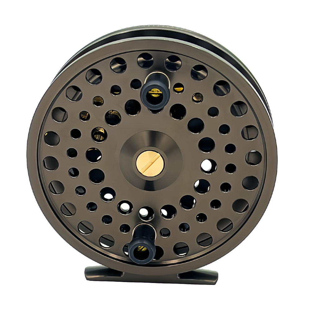 Gunsmoke Color Finish: The Halcyon reel boasts an elegant Gunsmoke color that not only looks stunning but also offers durability against the elements, ensuring it stands up to the rigors of fishing in harsh environments with it's enhanced anodized finish.